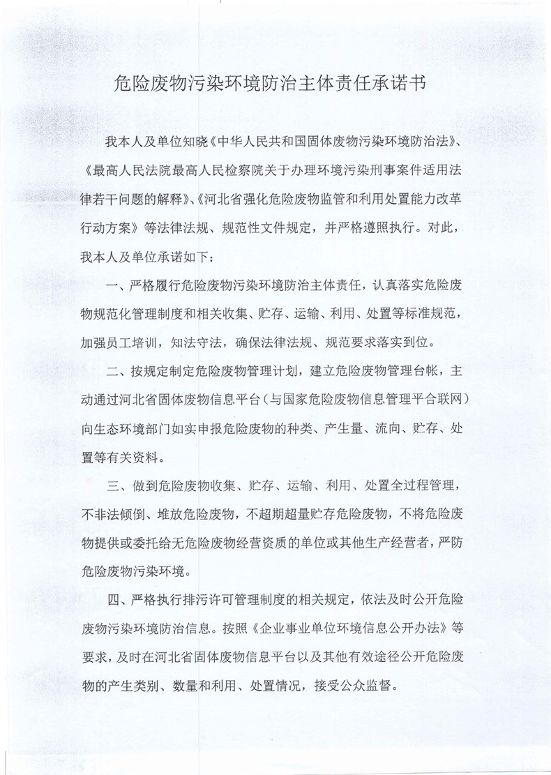 環(huán)境防止承諾書